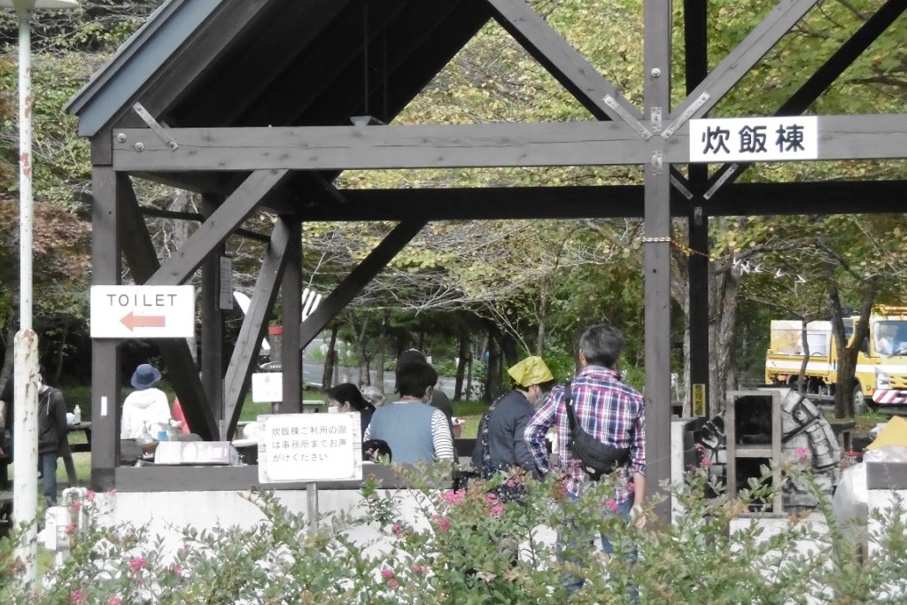 写真下段「岩魚焼き」「舞茸探しミズナラの巨木」「舞茸」